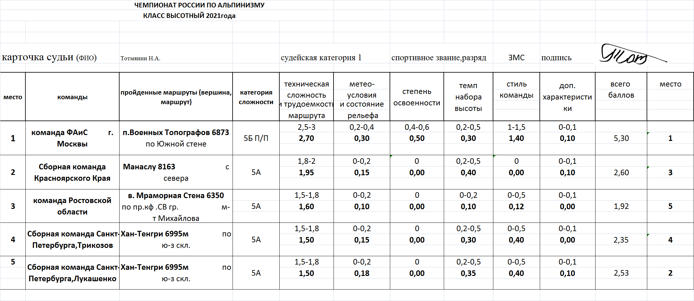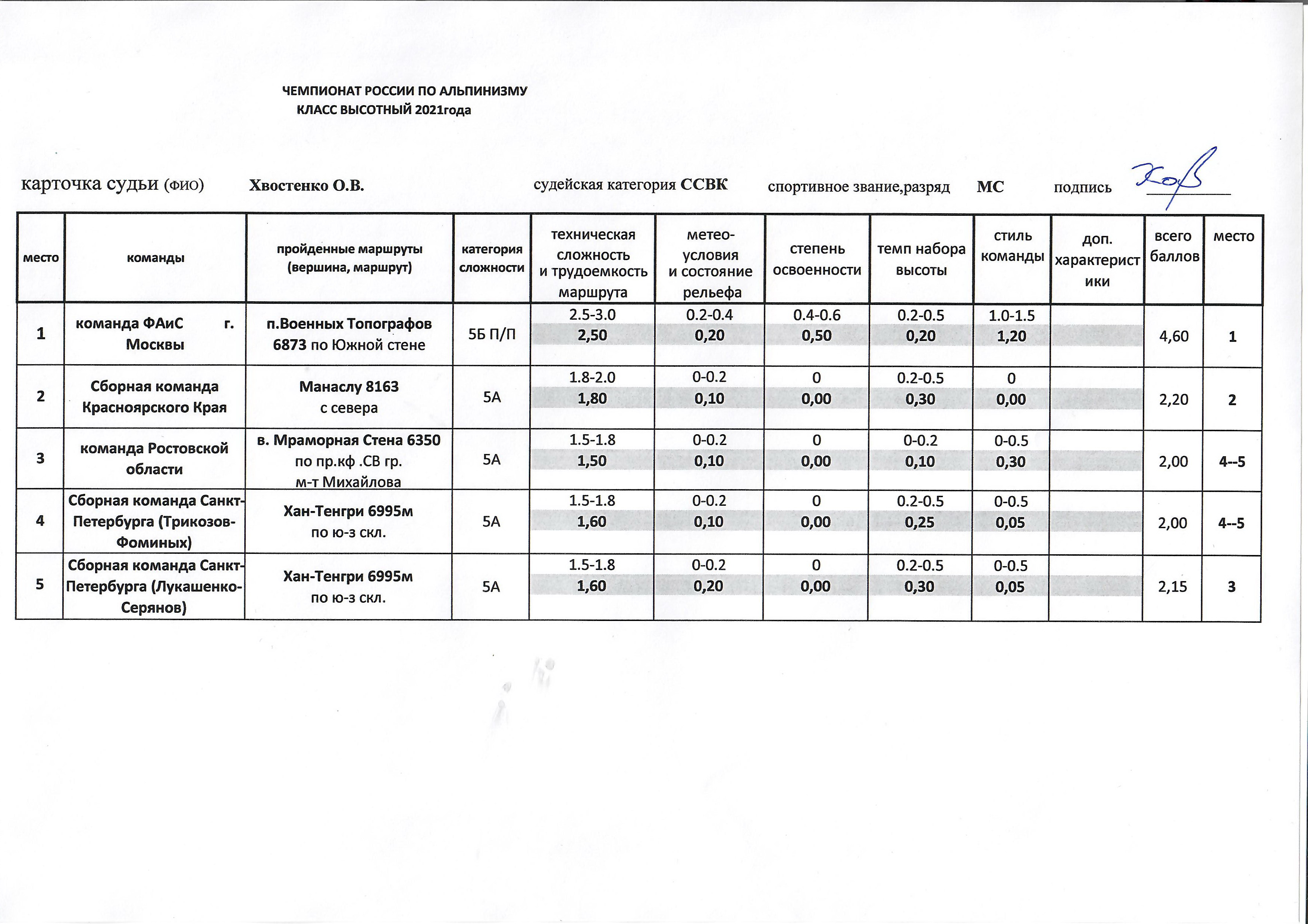 6.4. Оценку восхождений и определение мест, занимаемых группами, судейская коллегия производит на основании отчетов, в соответствии с последней версией «Методика оценки восхождений при судействе соревнований по альпинизму», размещенной на сайте ФАР, в разделе: Комиссия по классическому альпинизму /Документы. Лучшей признается группа, набравшая наибольшее количество баллов.