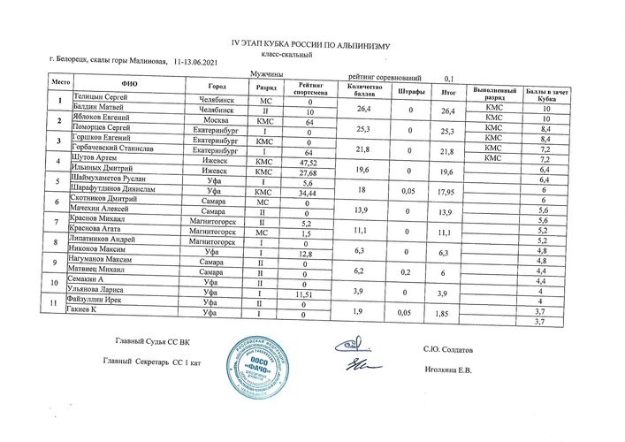Итоги IV этапа Кубка России в скальном классе