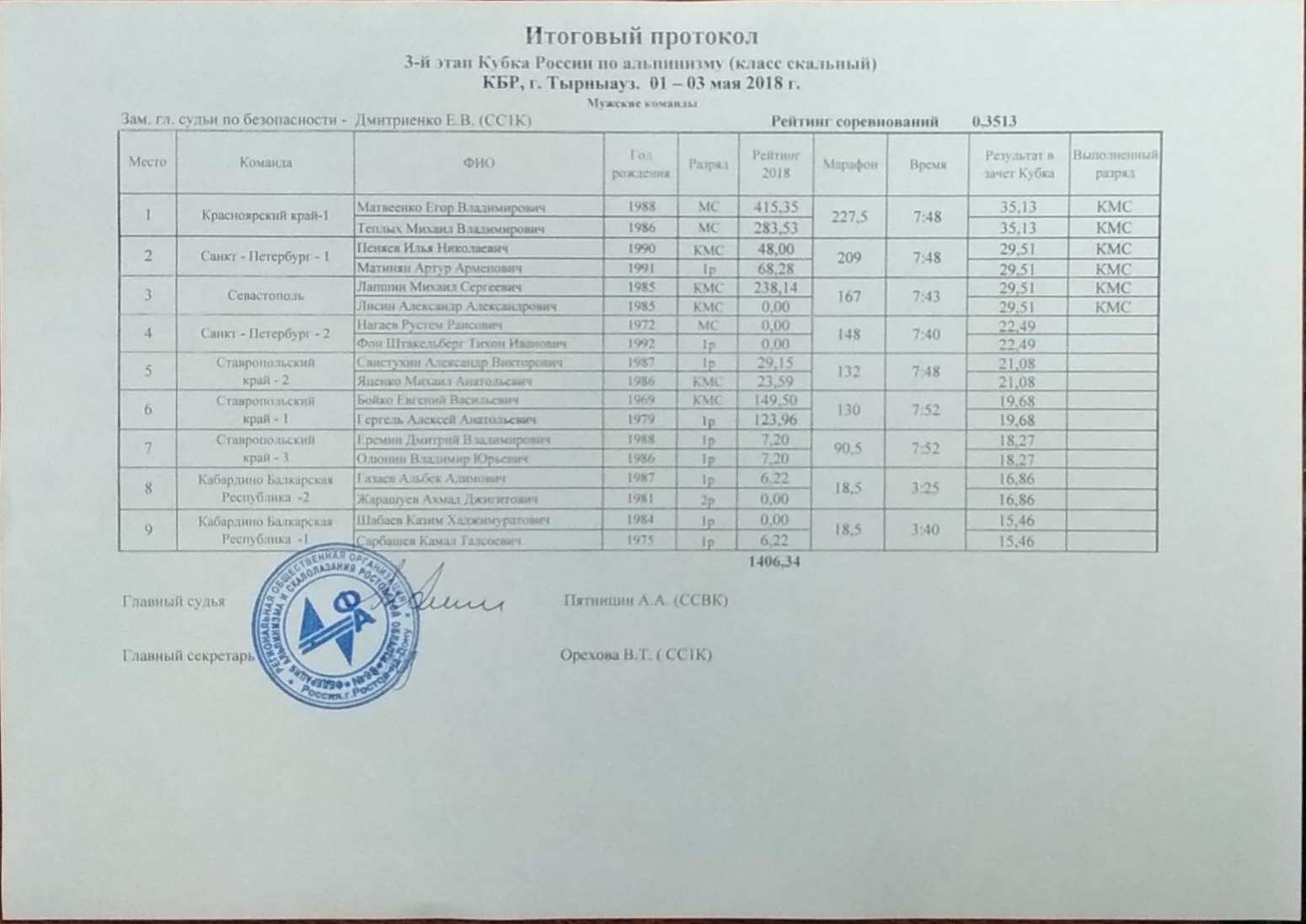 | Организатор | Кабардино-Балкария, РОО "Федерация альпинизма, скалолазания и спортивного туризма КБР" | ||||||||||
