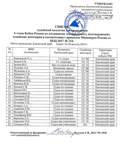 | Организатор | Камчатка, РОО "Камчатская Федерация альпинизма и скалолазания" | ||||