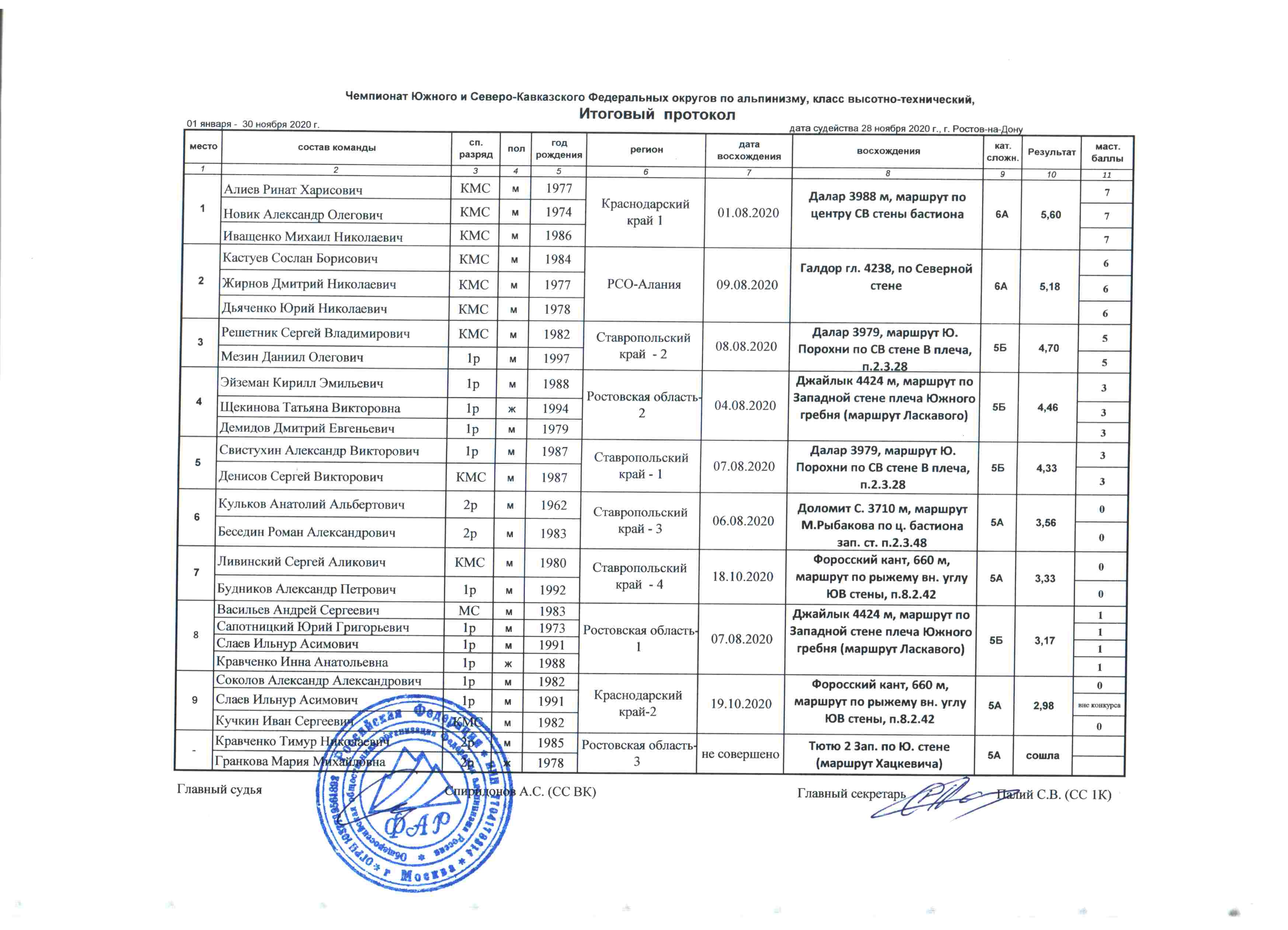 Итоговый протокол чемпионата ЮФО и СКФО, класс-высотно-технический