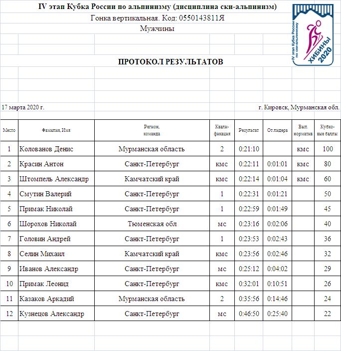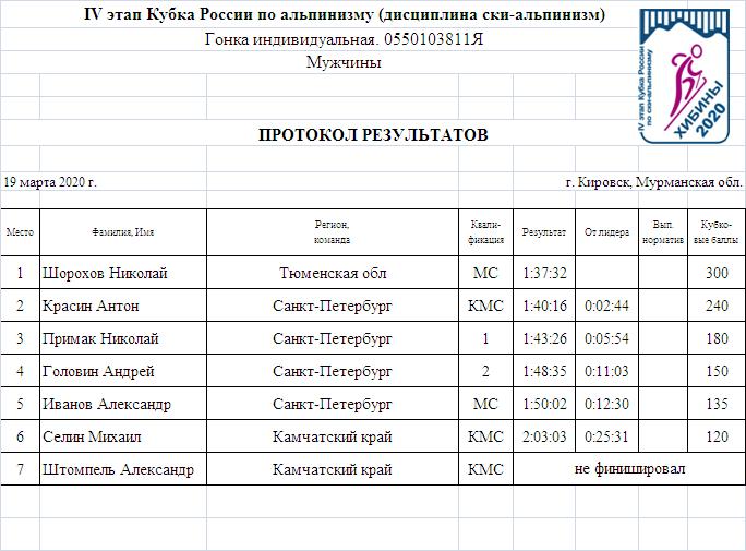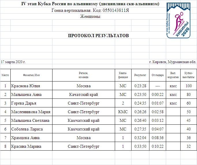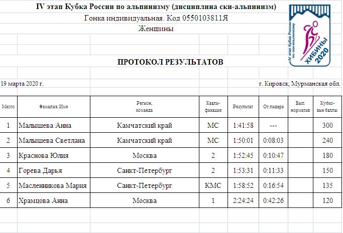 Результаты 4 заключительного этапа Кубка России по ски-альпинизму
