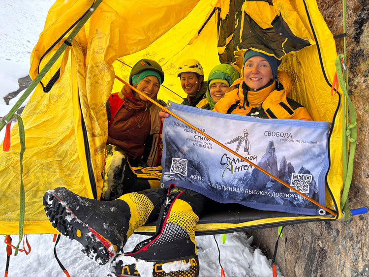 И, наконец, подходим к кульминации. В этом году произошло поистине значимое событие для российского женского альпинизма – премию «Стальной ангел», ставшую в прошлом году международной и доставшейся в 2024-м году словенской команде, в этом году получила российская женская команда из Санкт-Петербурга: Ольга Падучева, Оксана Кочубей, Надежда Пильщикова и Надежда Мужикина за прохождение новой линии на пик Айрис (Iris peak, 5200 м) в долине Мияр в Индийских Гималаях – маршрут «Карма» 6А к.тр. (1100 m: 650 m 6c, ED + 550 m PD/AD).