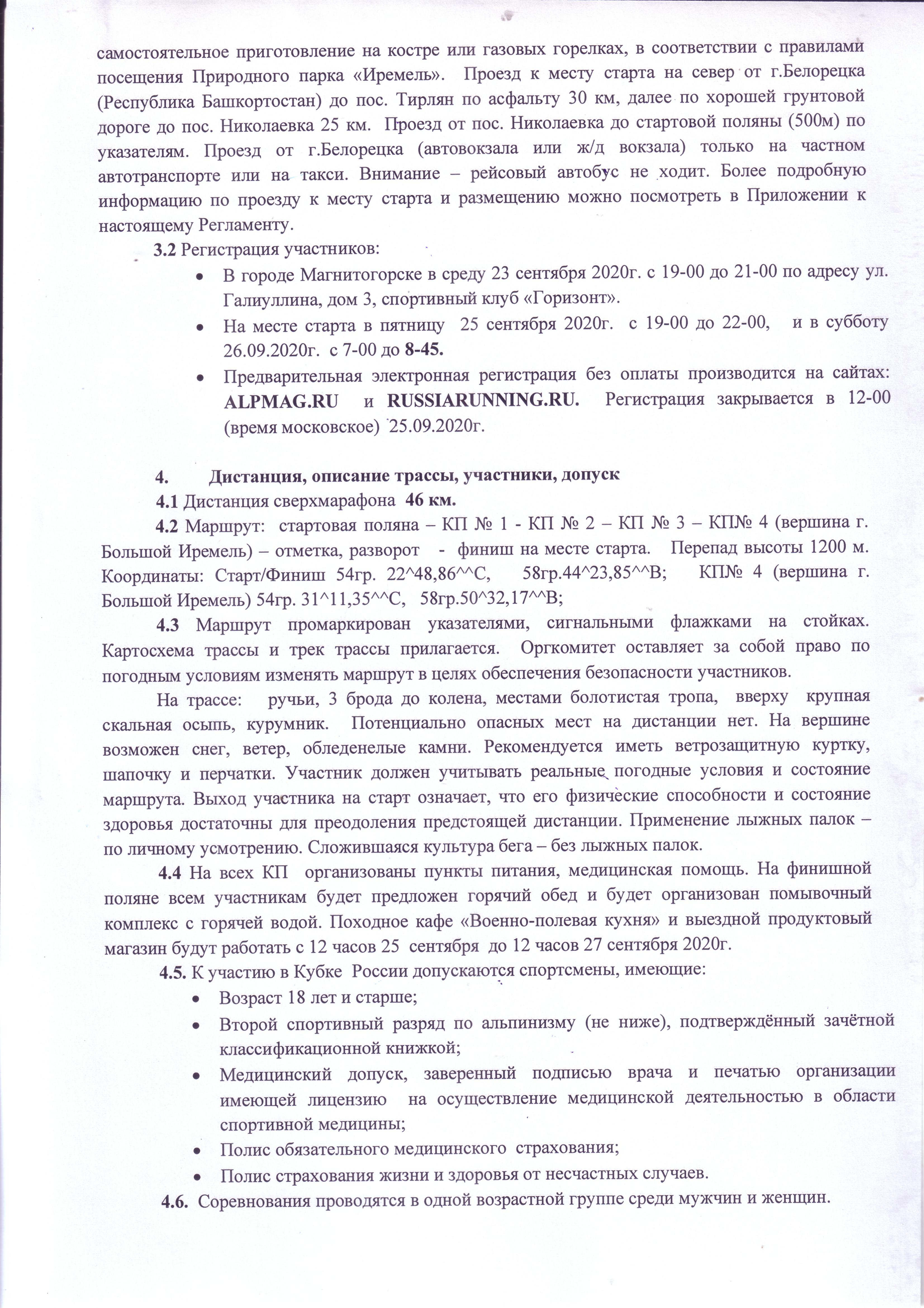 1.2 Горный сверхмарафон проводится в соответствии с Правилами проведения соревнований по скайраннингу в России. Руководство соревнованиямиосуществляет Управление по ФКCиТ г.Магнитогорска, Общественная Организация«Альпинистский клуб города Магнитогорска»,при поддержке дирекции Природного парка «Иремель».