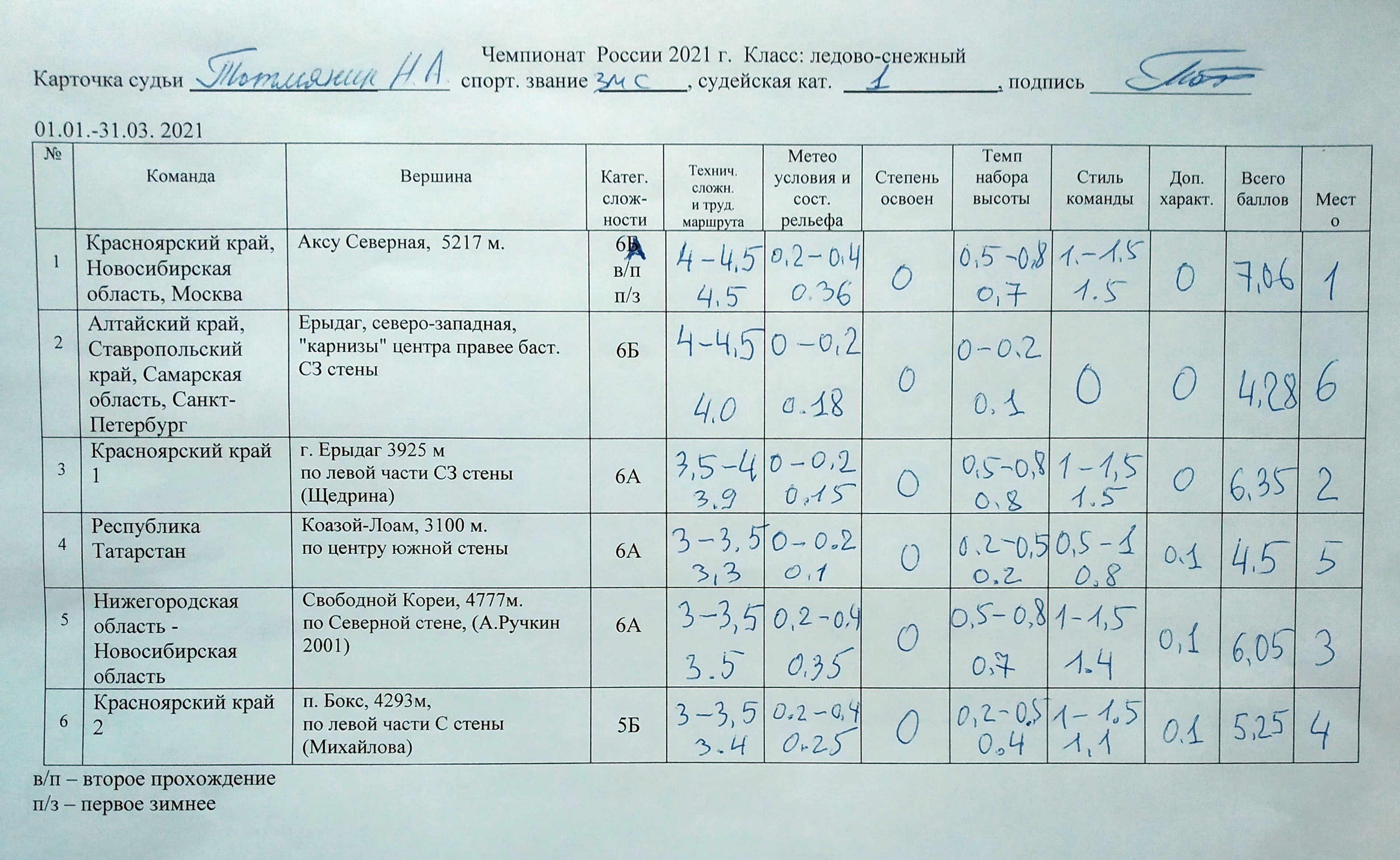 6.4. Оценку восхождений и определение мест, занимаемых группами, судейская коллегия производит на основании отчетов, в соответствии с последней версией «Методика оценки восхождений при судействе соревнований по альпинизму», размещенной на сайте ФАР, в разделе: Комиссия по классическому альпинизму /Документы. Лучшей признается группа, набравшая наибольшее количество баллов.