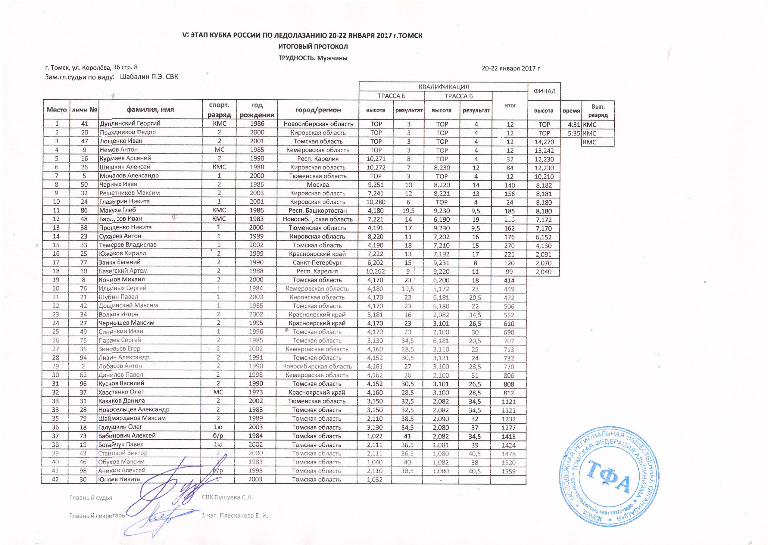 21-22 января 2017 года в Томске пройдет VI этап Кубка России, Всероссийские юношеские соревнования, а также чемпионат Томской области по ледолазанию.