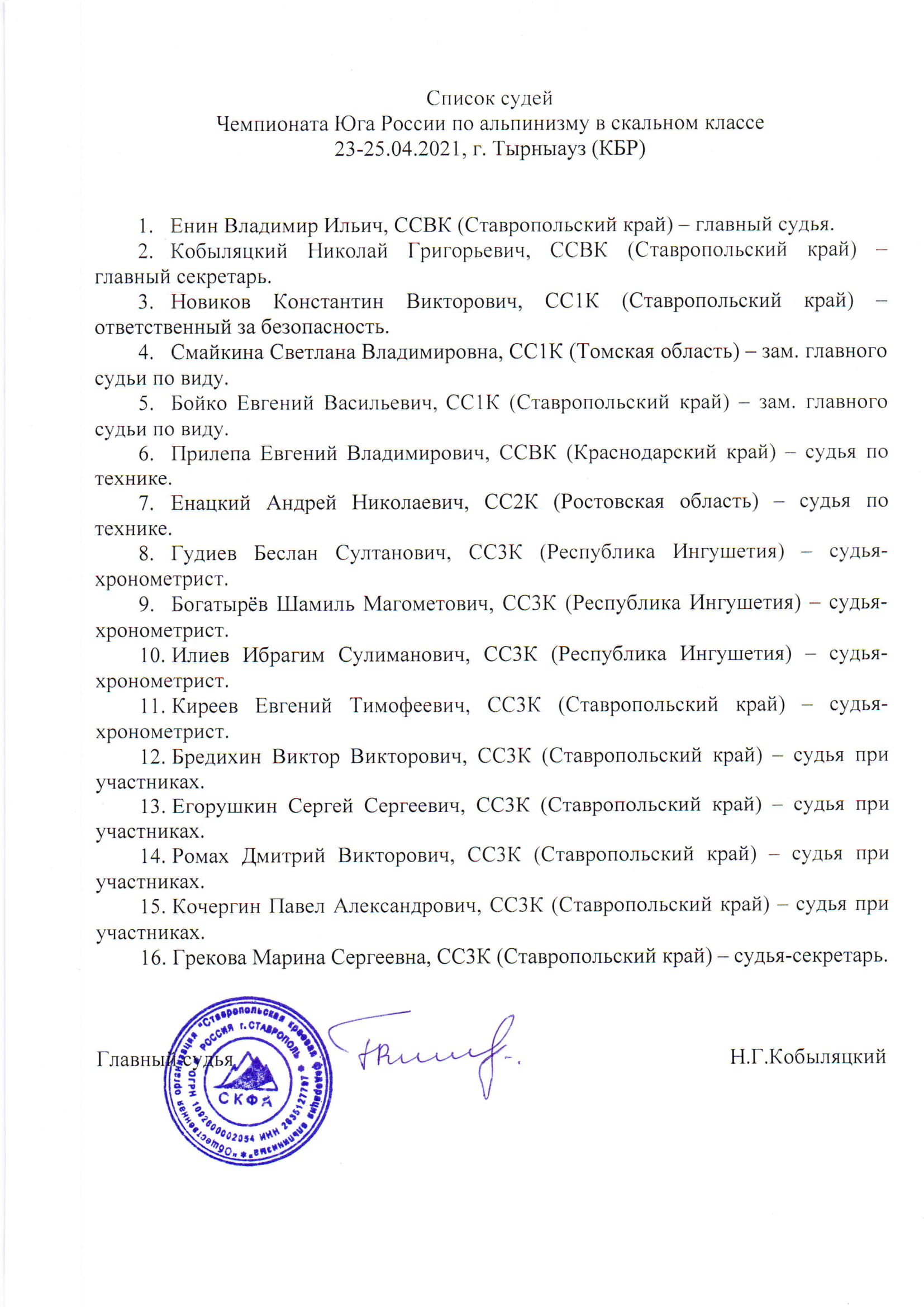 1.3. Главный судья соревнований СС ВК Кобыляцкий Николай Григорьевич.