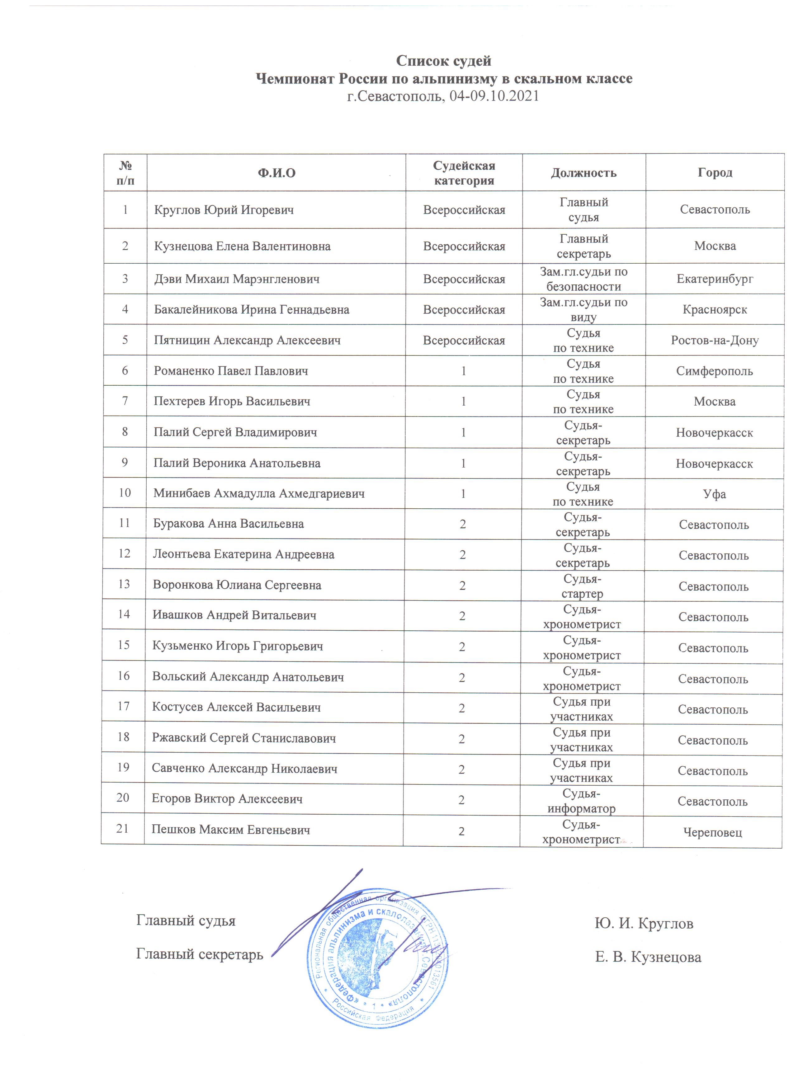 Главный судья соревнований – Круглов Ю.И., судья всероссийской категории (г.Севастополь).
