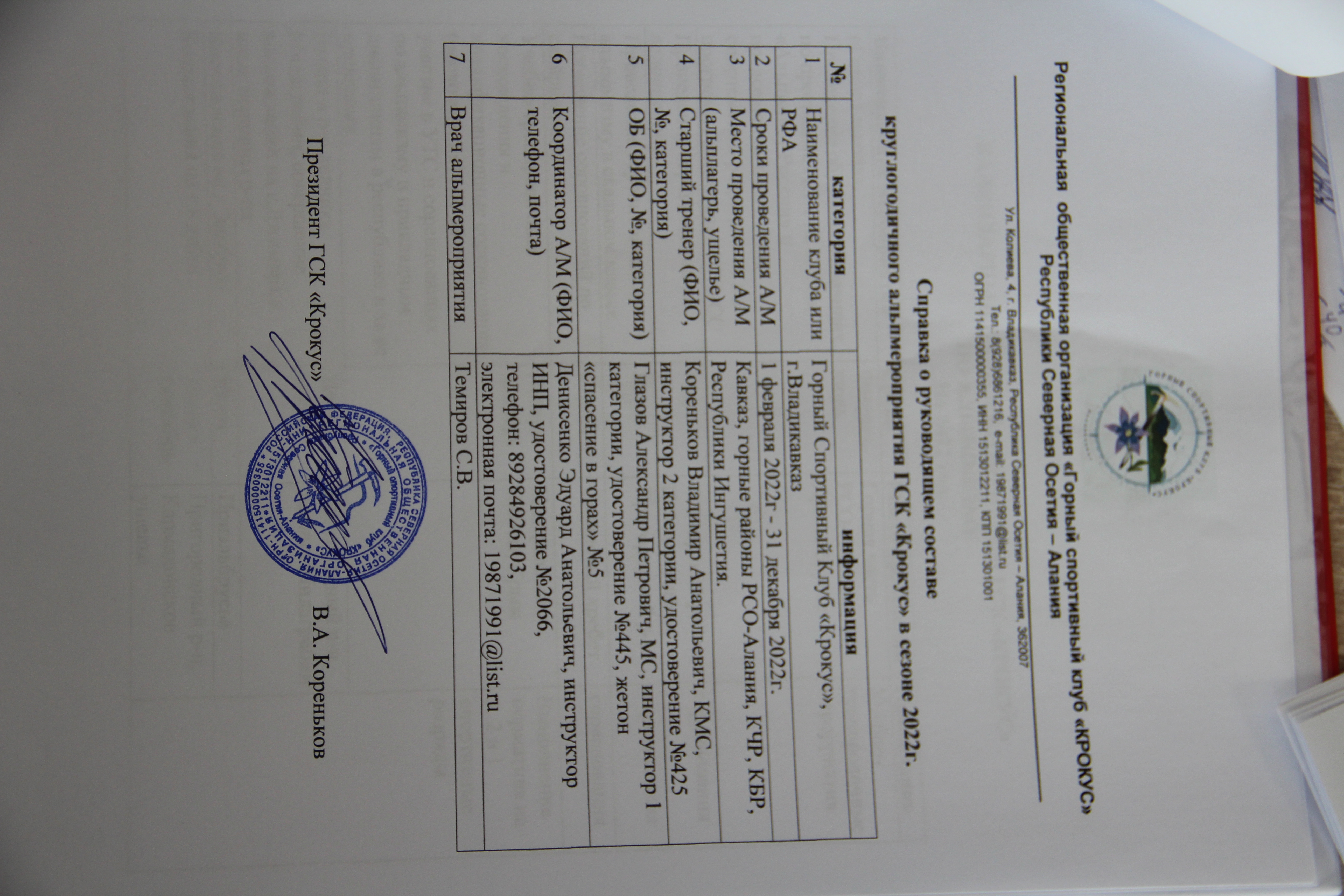 Альпмероприятие Владикавказ, РОО "Горный спортивный клуб "Крокус"