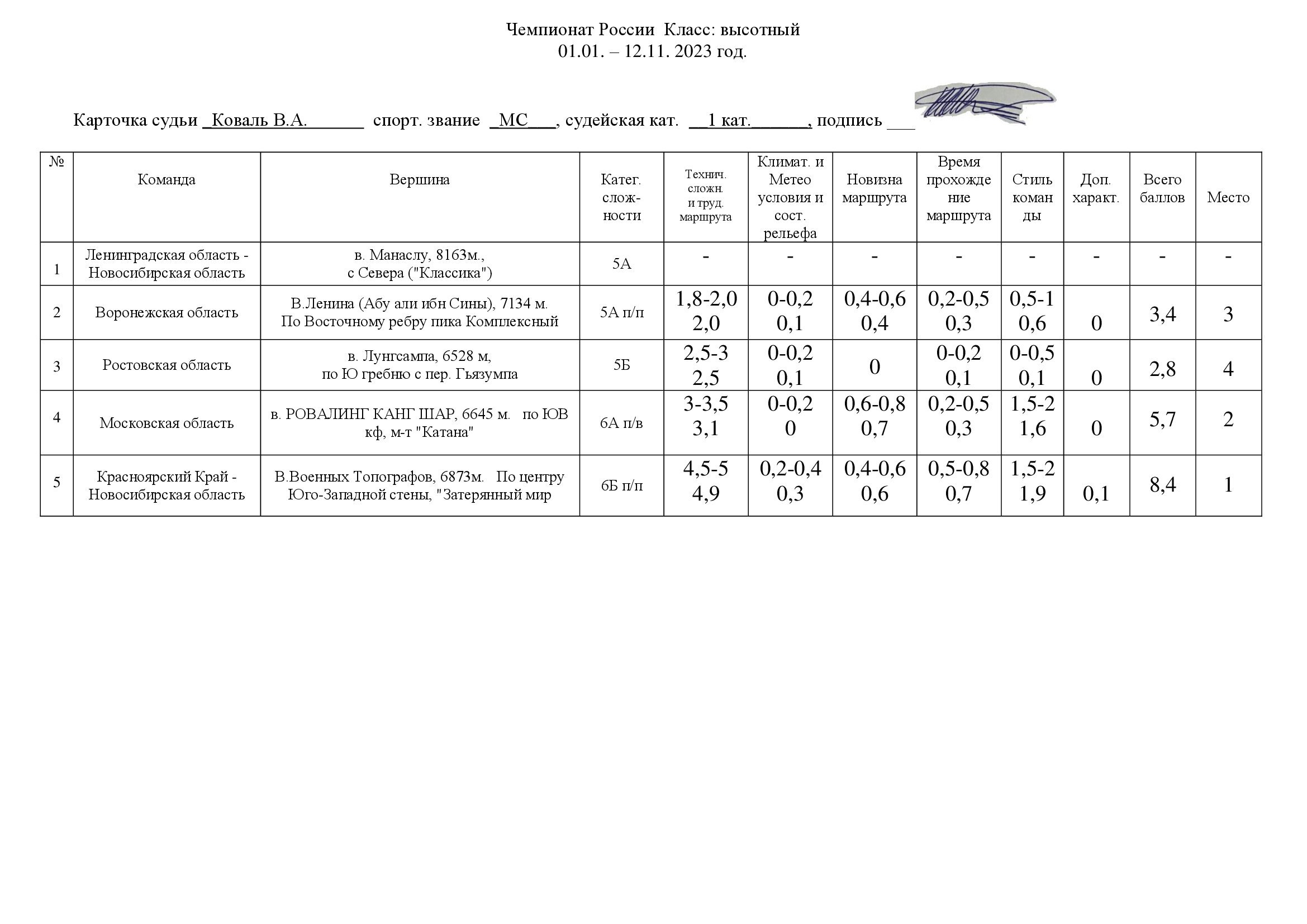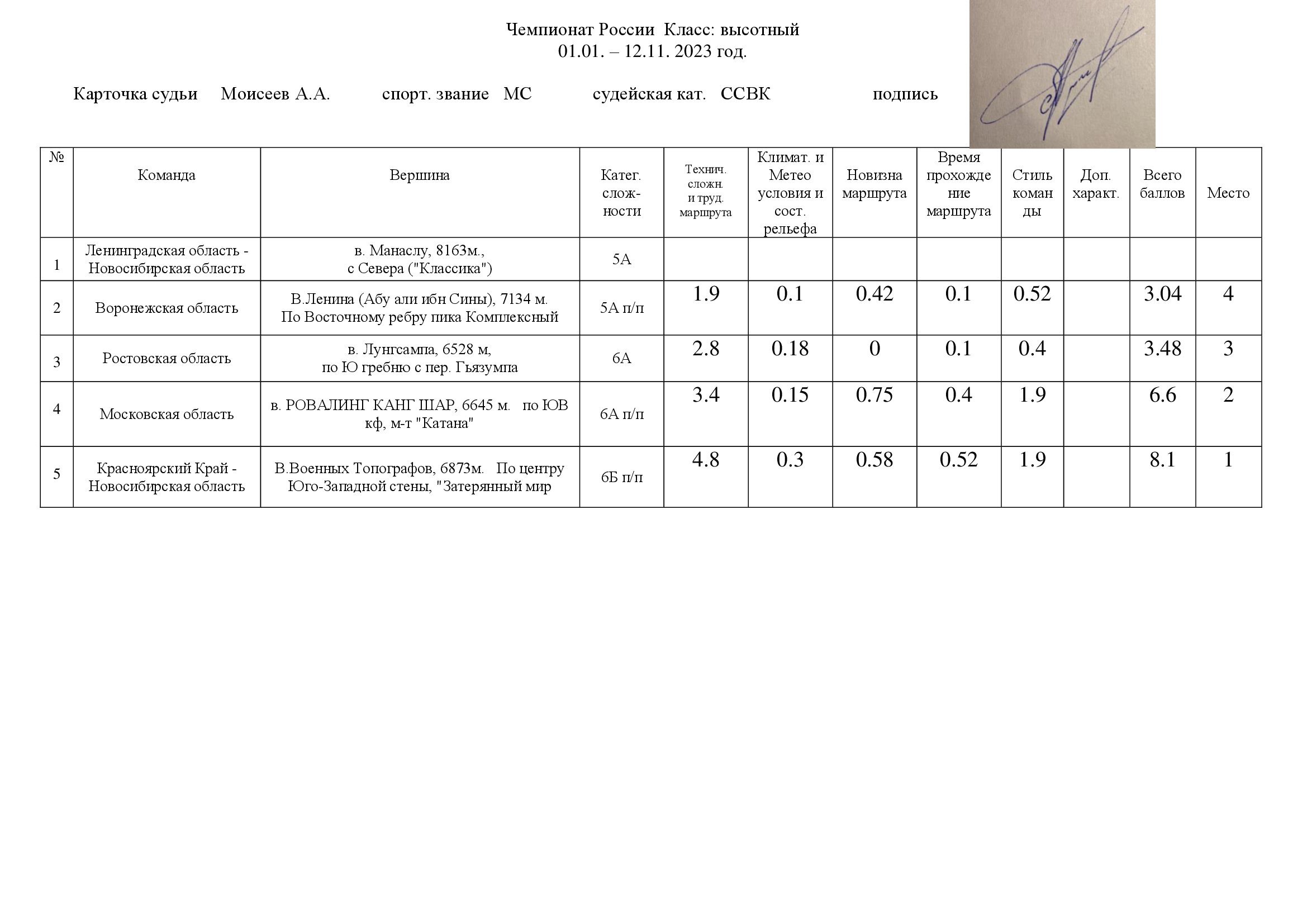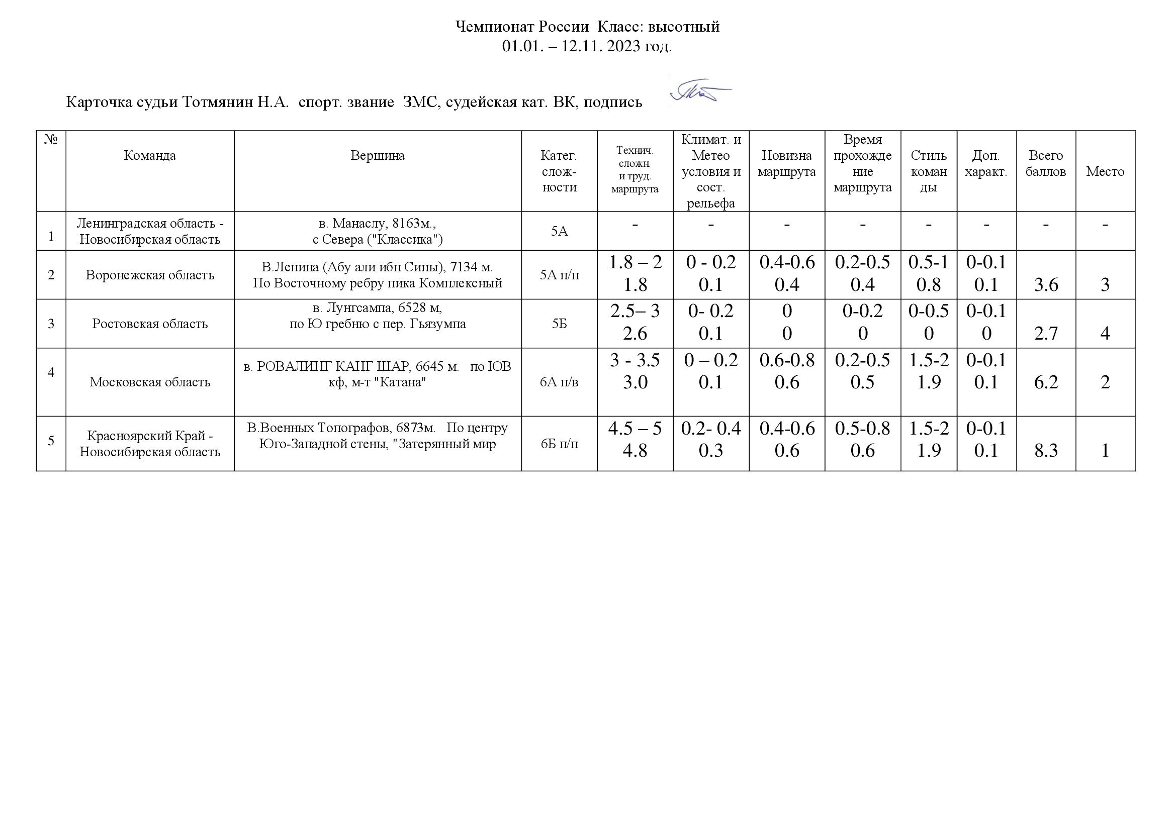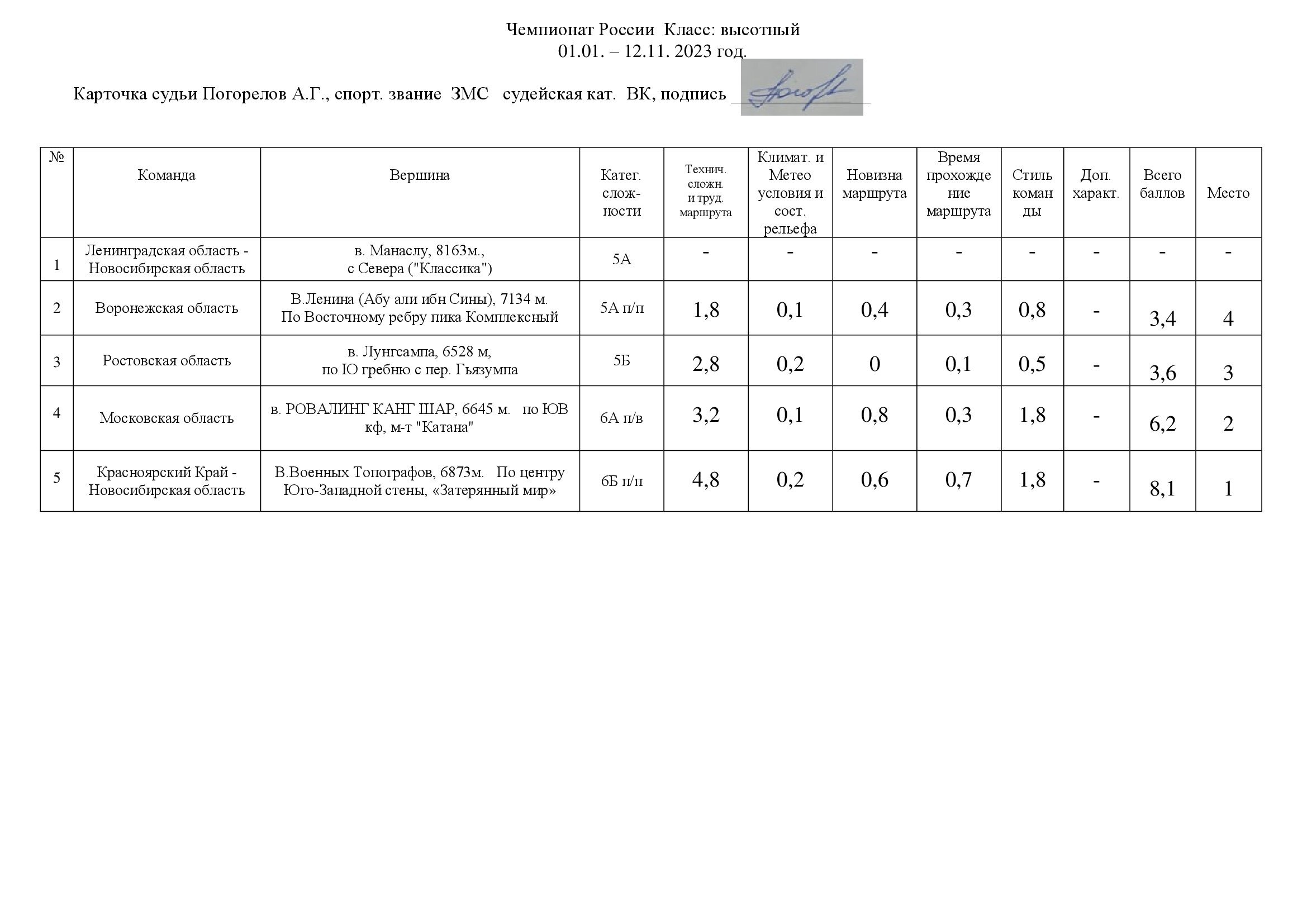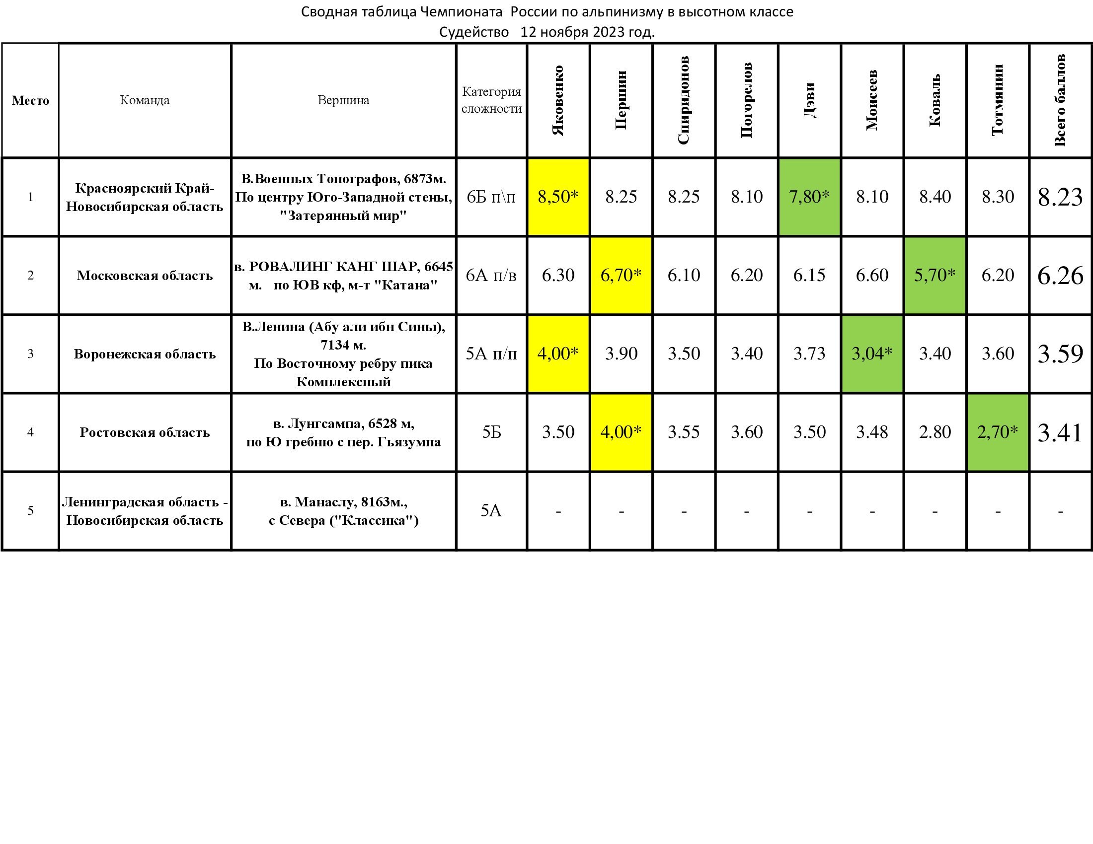Предварительные результаты Чемпионата России по альпинизму 2023, высотный класс