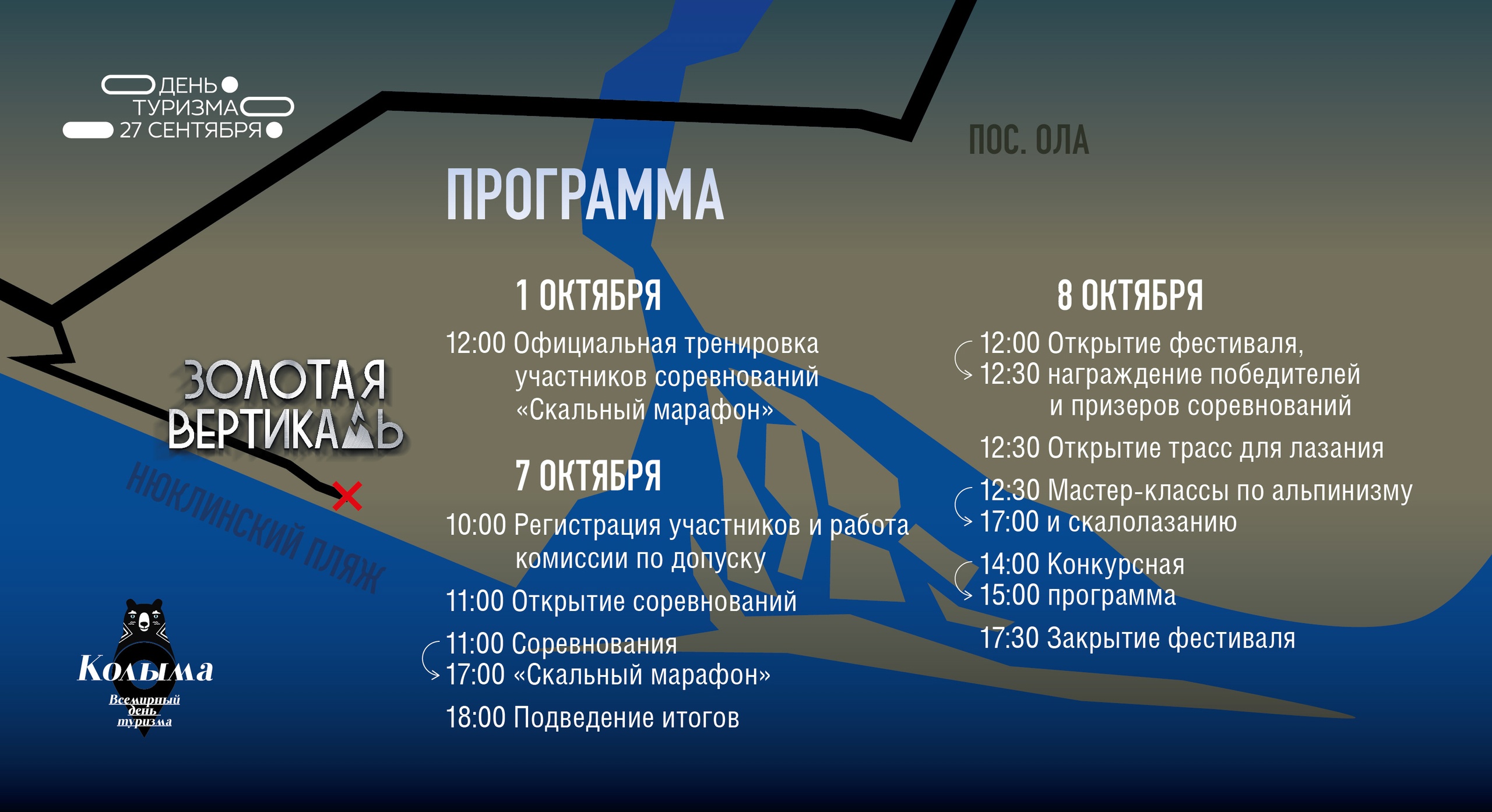 Фестиваль проводятся 8 октября 2023 года на месте высадки первой колымской геологоразведочной экспедиции в Ольском районе Магаданской области.