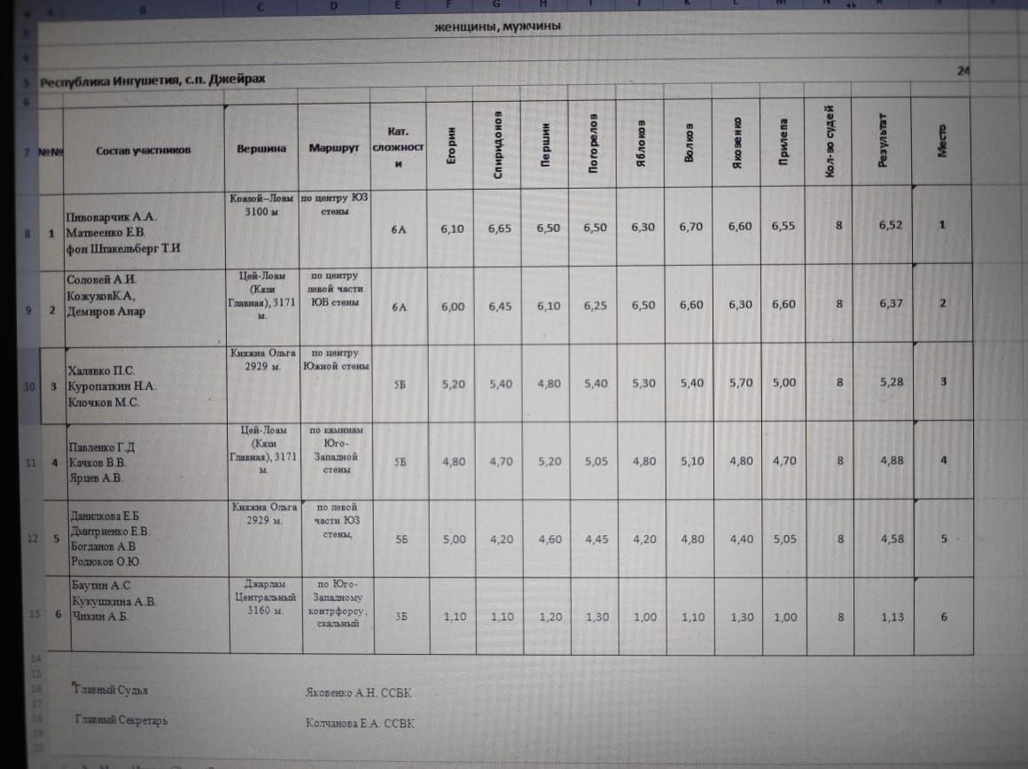 7.1. В зачет соревнований для определении победителя, призеров и дальнейшем распределении мест участвует одно восхождение (на усмотрение группы), пройденное группой во время соревнований, при обязательной классификации маршрута классификационной комиссией.