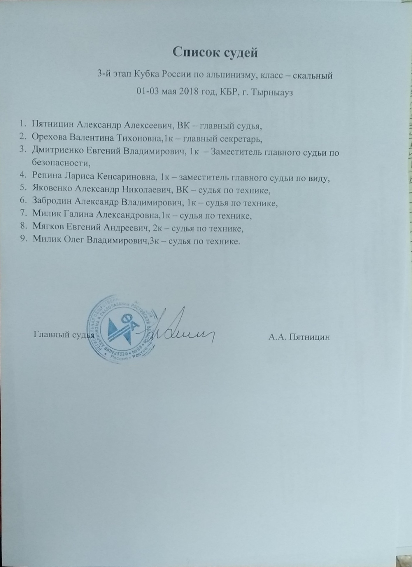 | Организатор | Кабардино-Балкария, РОО "Федерация альпинизма, скалолазания и спортивного туризма КБР" | ||||||||||