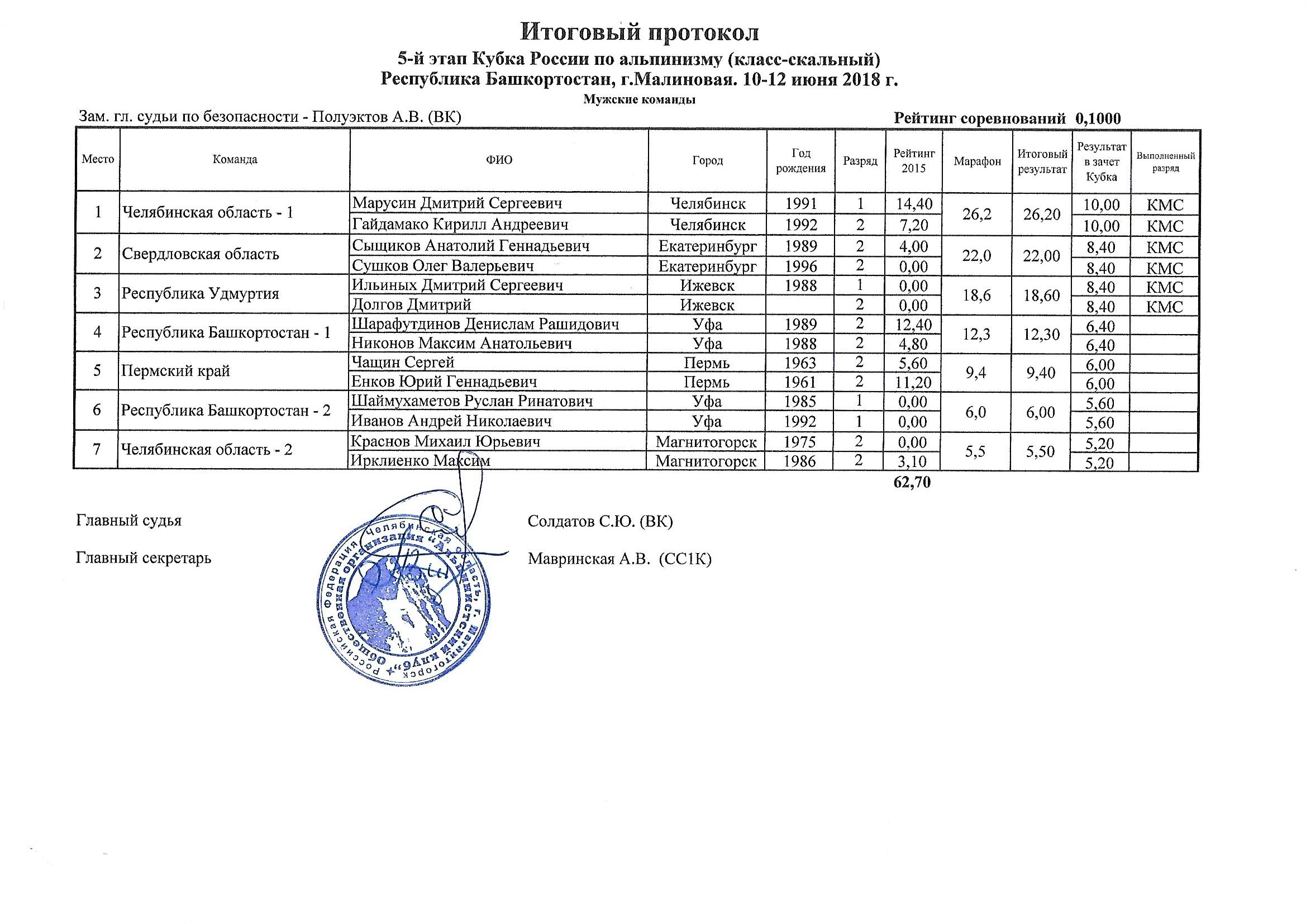 | Место проведения | РБ Белорецкий район гора Малиновая | ||||||||||