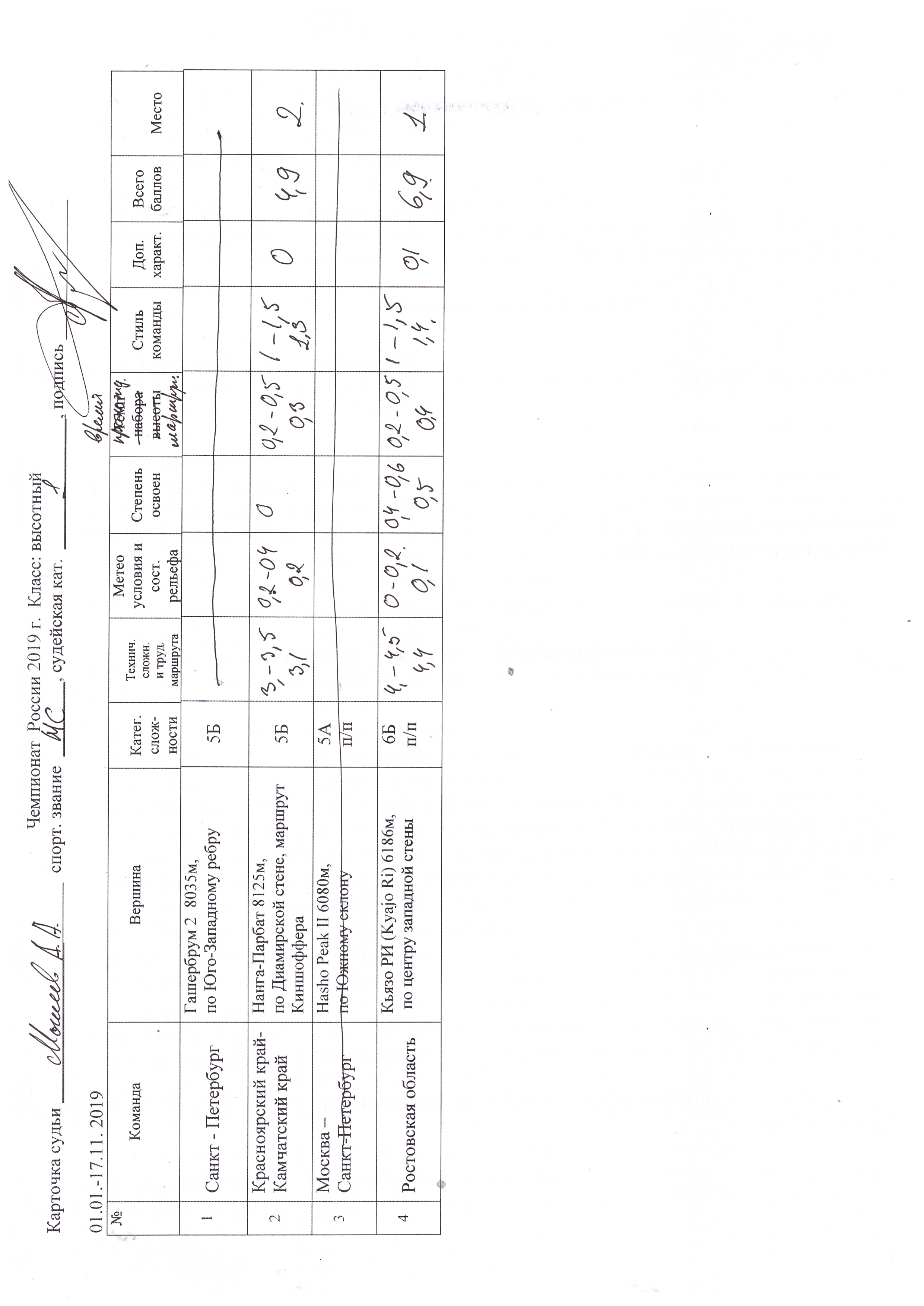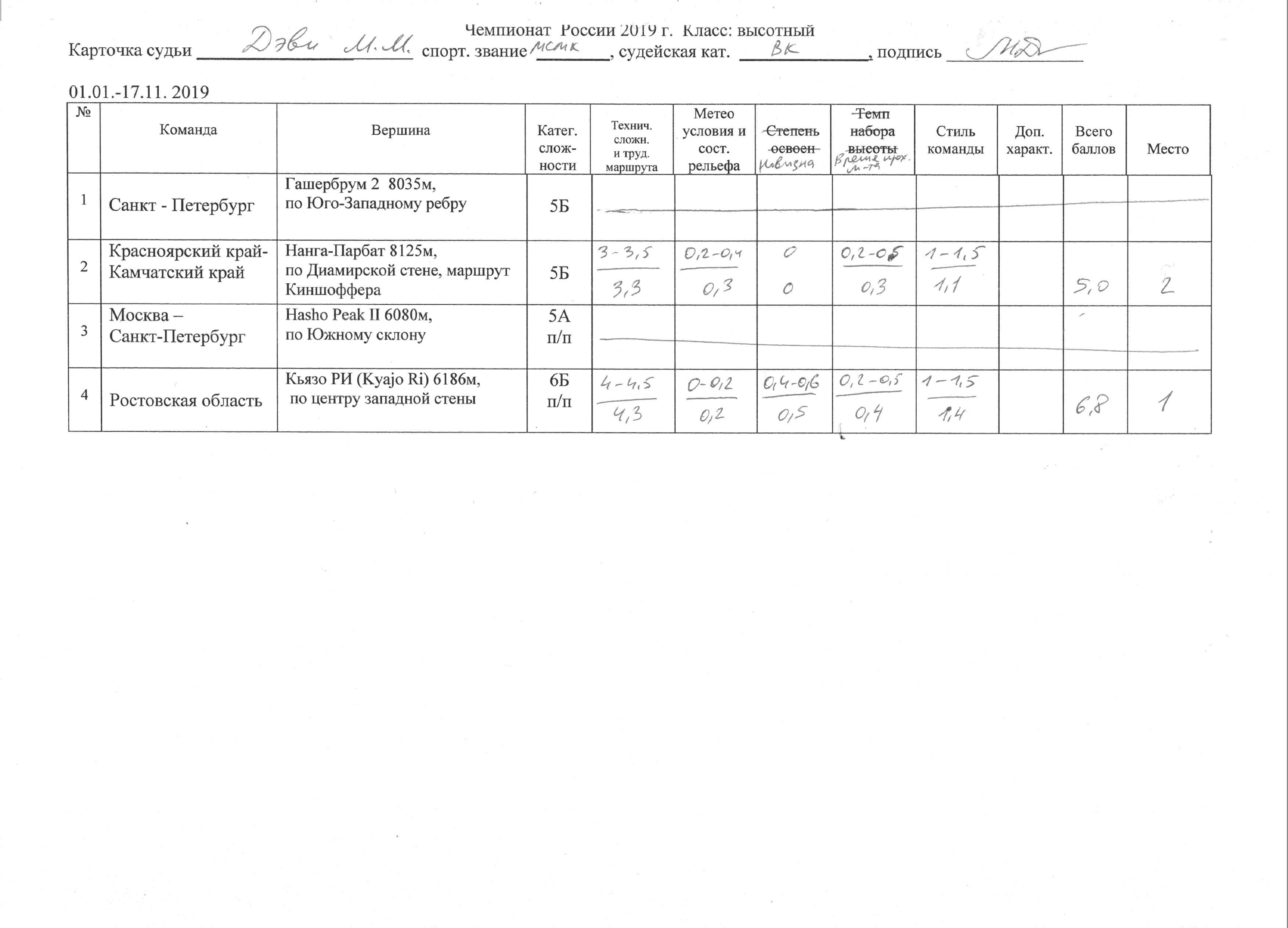 6.3. Оценку восхождений и определение мест, занимаемых командами, судейская коллегия производит в соответствии с «Методикой оценки восхождений при судействе соревнований по альпинизму» на основании отчетов. Лучшей признается команда, набравшая наибольшее количество баллов.