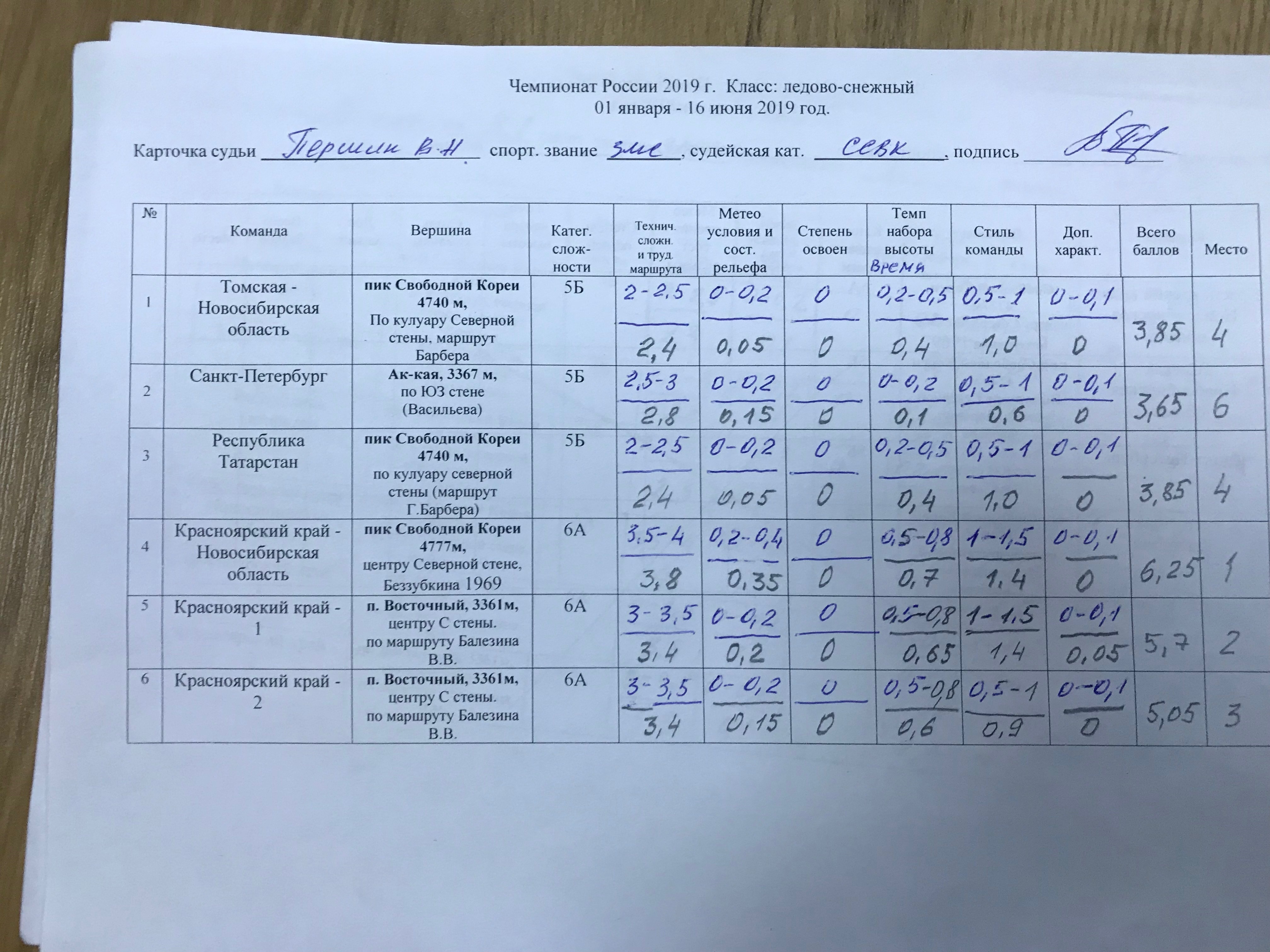 6.3. Оценку восхождений и определение мест, занимаемых командами, судейская коллегия производит в соответствии с «Методикой оценки восхождений при судействе соревнований по альпинизму» на основании отчетов. Лучшей признается команда, набравшая наибольшее количество баллов.