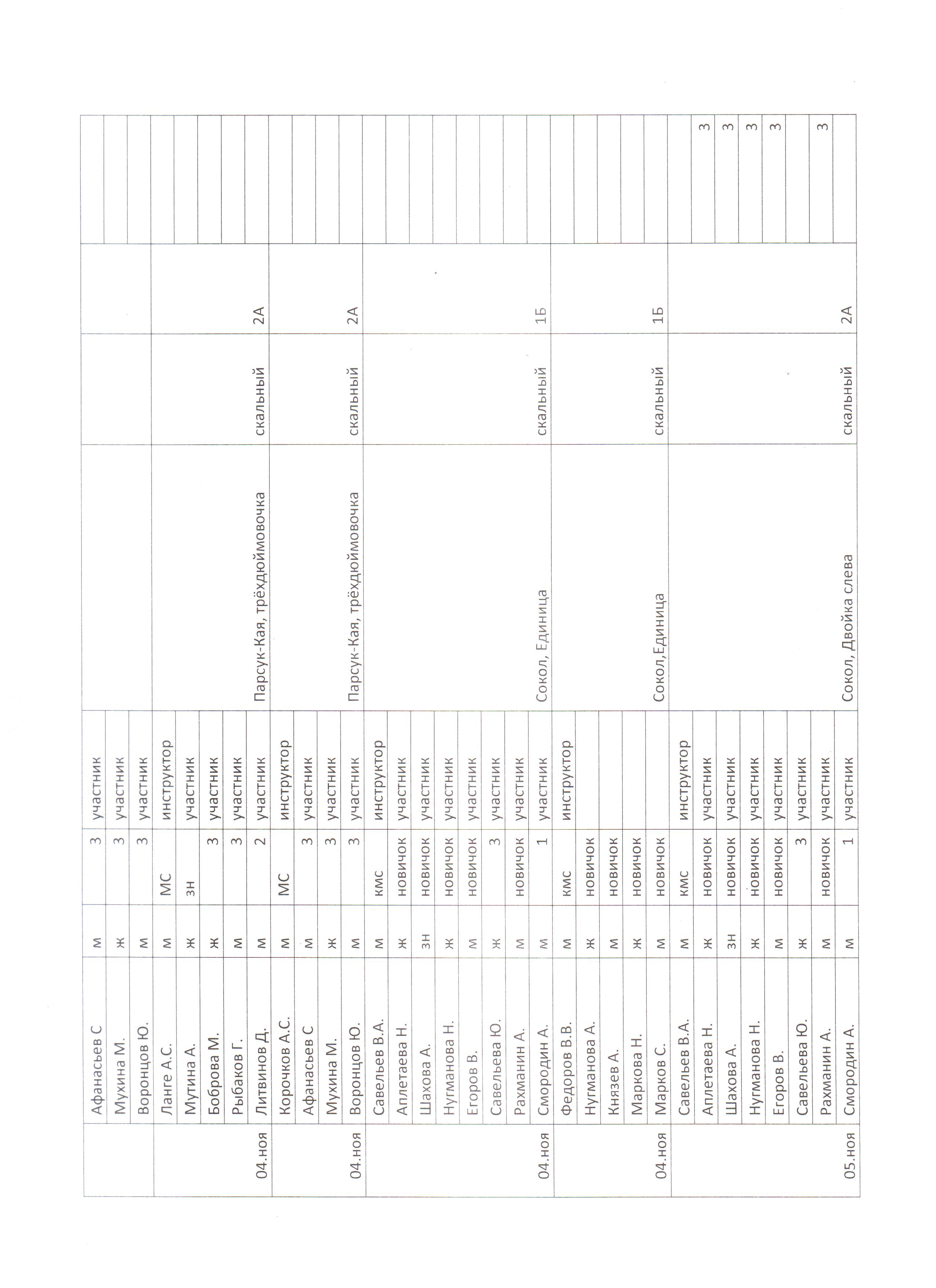 4 ноября – Восхождение на в. Сокол (маршрут 2Б к/тр. «Muchacha»), разбор восхождения, занятия.