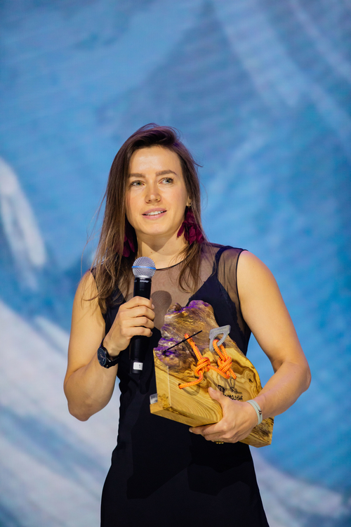 В этом году приз «Проводник» получила Ольга Лукашенко. Дважды обладательница Стального ангела, обладательница Золотого ледоруба России. В этом году Оля получила международный сертификат горного гида IFMGA и в настоящий момент она единственная из наших девшек-гидов с международной лицензией.